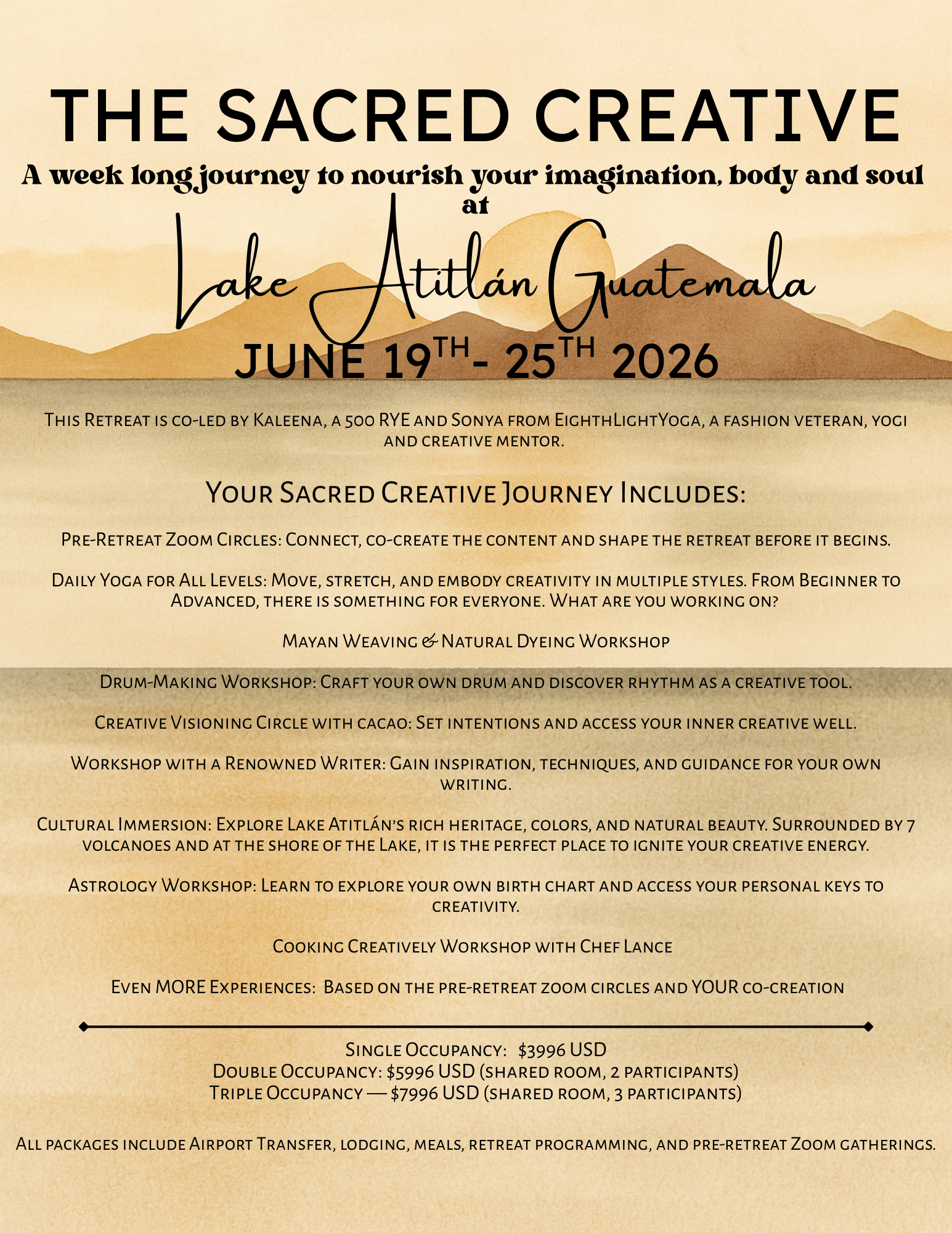 Come as you are, no prior experience in yoga or the arts is needed. and leave nourished, inspired, and deeply connected to your sacred creative self.